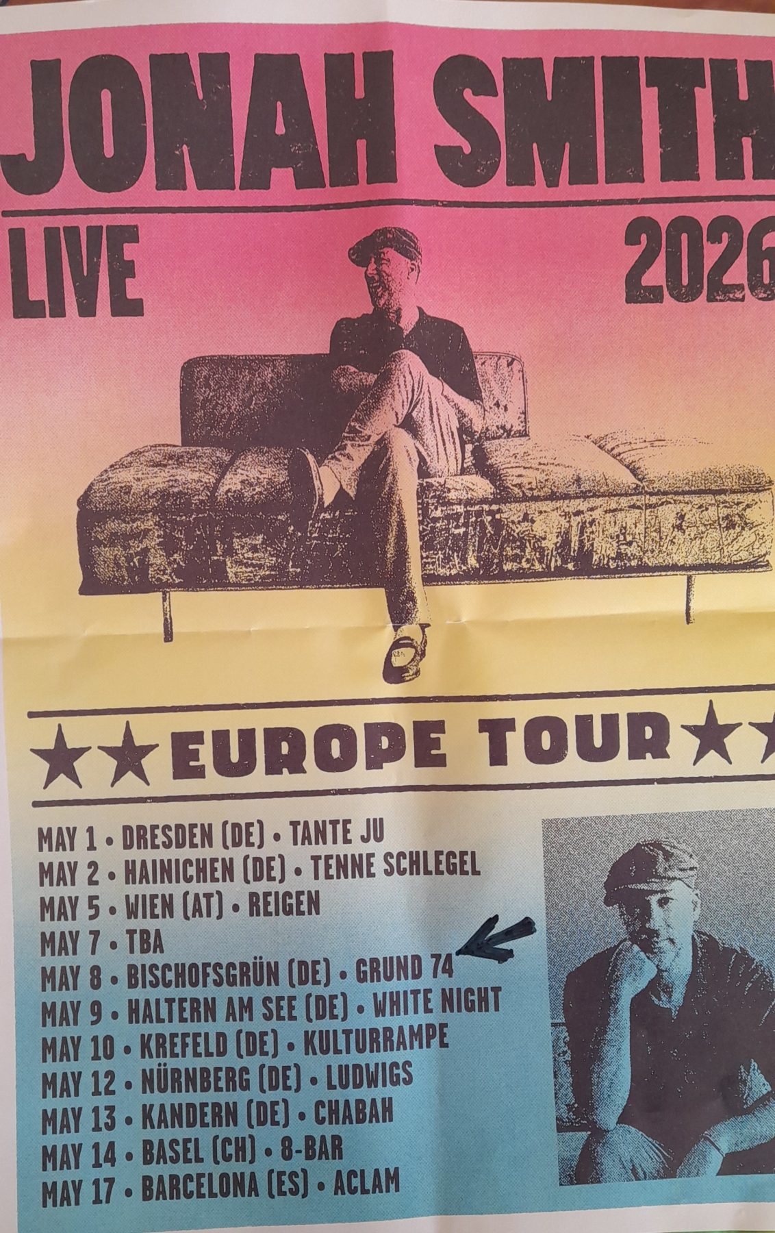 Konzert im Grund 74 Jonah Smith VVK und Info unter 01515 7661677 Freitag, 08. Mai